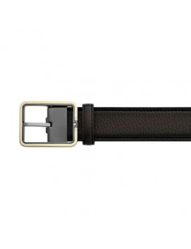 Ceinture en cuir marron 35 mmCeinture à boucle ardillon finition or clair brillant et ruthénium Rectangular Frame